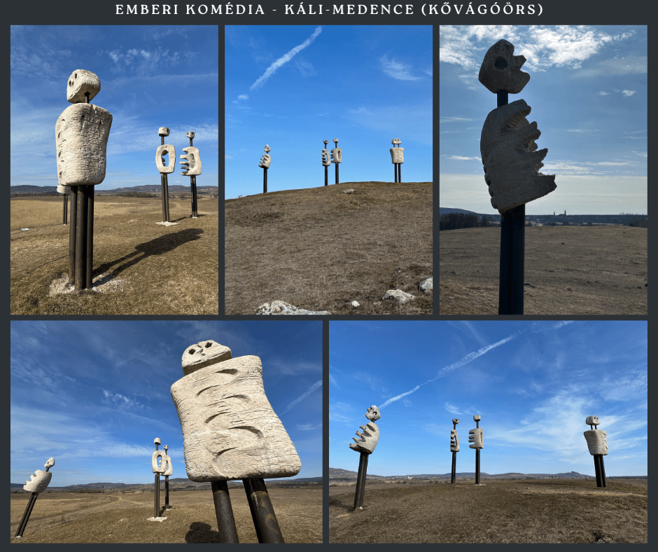 “Veszprémi Imre acélból és mészkőből készült szoborcsoportjának alakjai a Kővágóörs melletti Kornyi-tó partján állnak, amik 1986 óta lakói a tájnak. Az emberszerű, 2-3 méteres figurák leginkább valamilyen posztapokaliptikus őrszemekre emlékeztetnek, akik a domb tetejéről figyelik a Káli-medencét.”