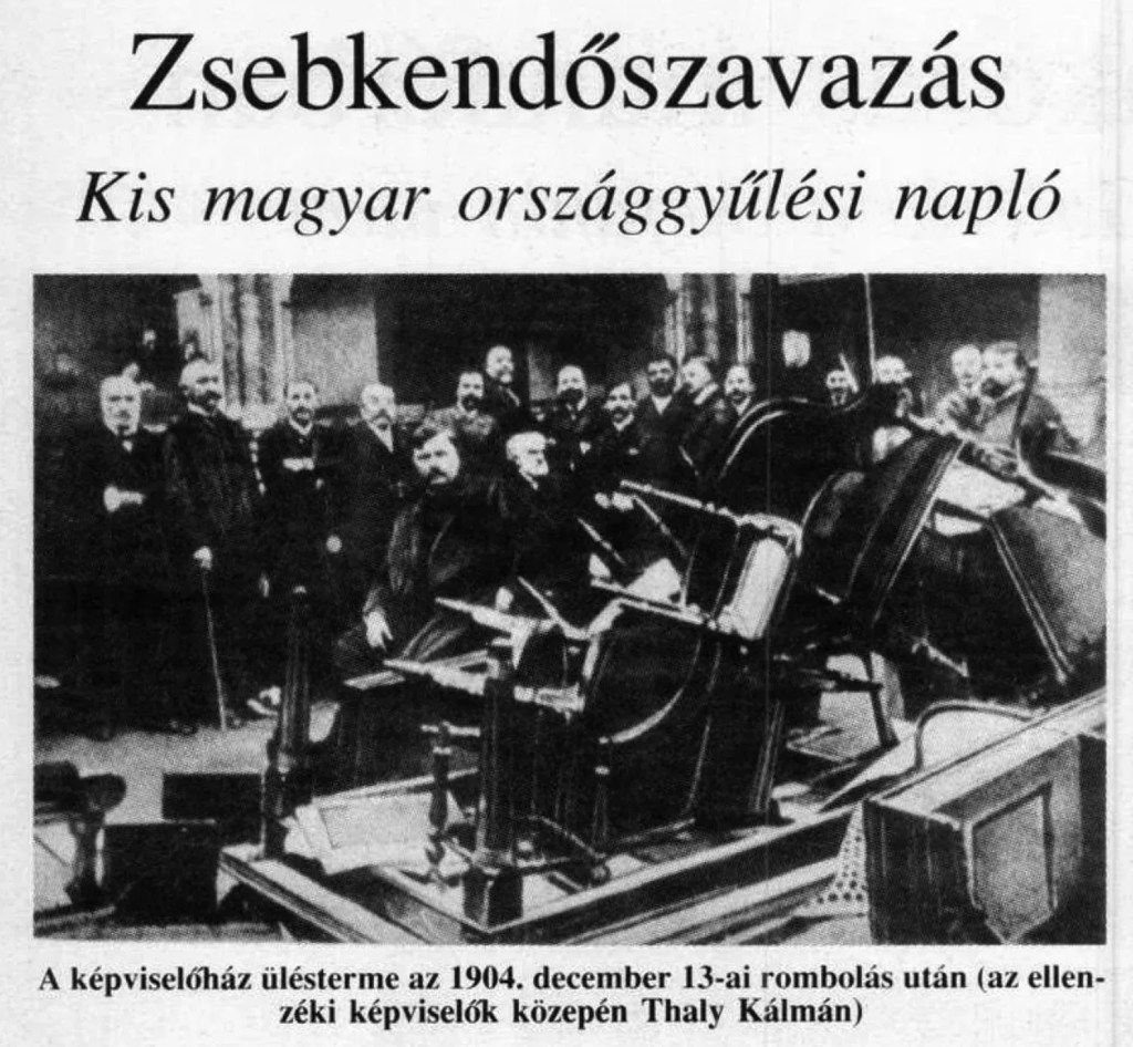 Viszont érdekességként eszembe jutott, hogy a Magyar Országház sokszor elég kemény történések színhelye volt. Az 1900-as évek elején az obstrukció formái közé tartozott az állandó bekiabálás, zajkeltés, a verbális agresszió, akár a rongálás, sőt nem egyszer a verekedés is.